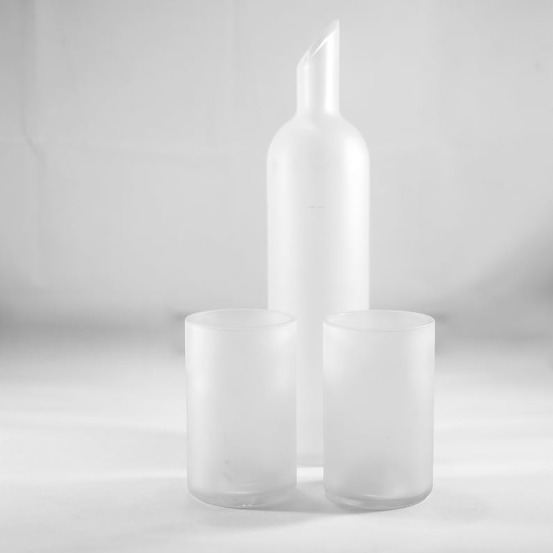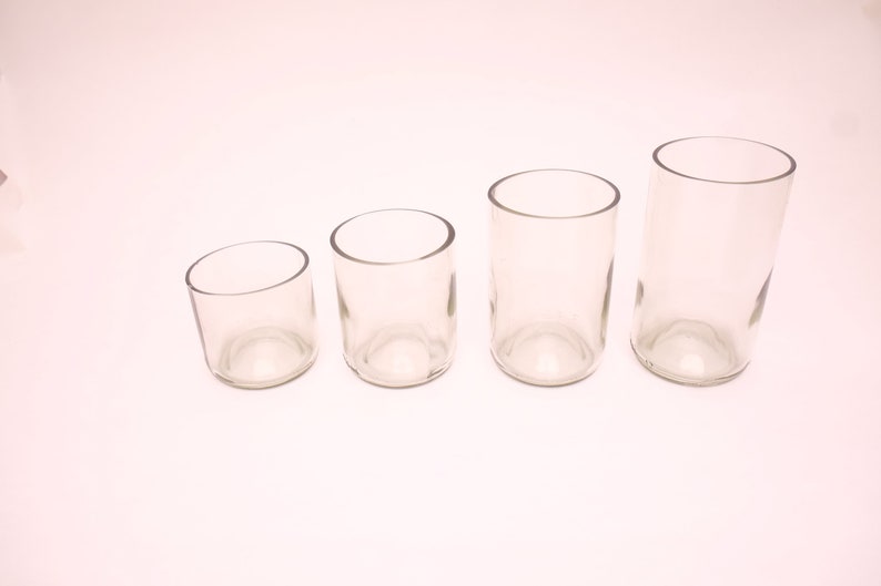 Diamond cut from Clear Wine bottles from around the world, sanded, polished and beveled leaving a smooth finish with no rough or sharp edges. These glasses come in 4 variant sizes or we can craft a custom size for you.