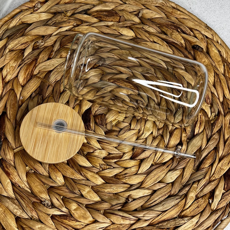 16oz glass can, bamboo lid and straw sold at an add on price. Buy a set of 4 for a discounted price!